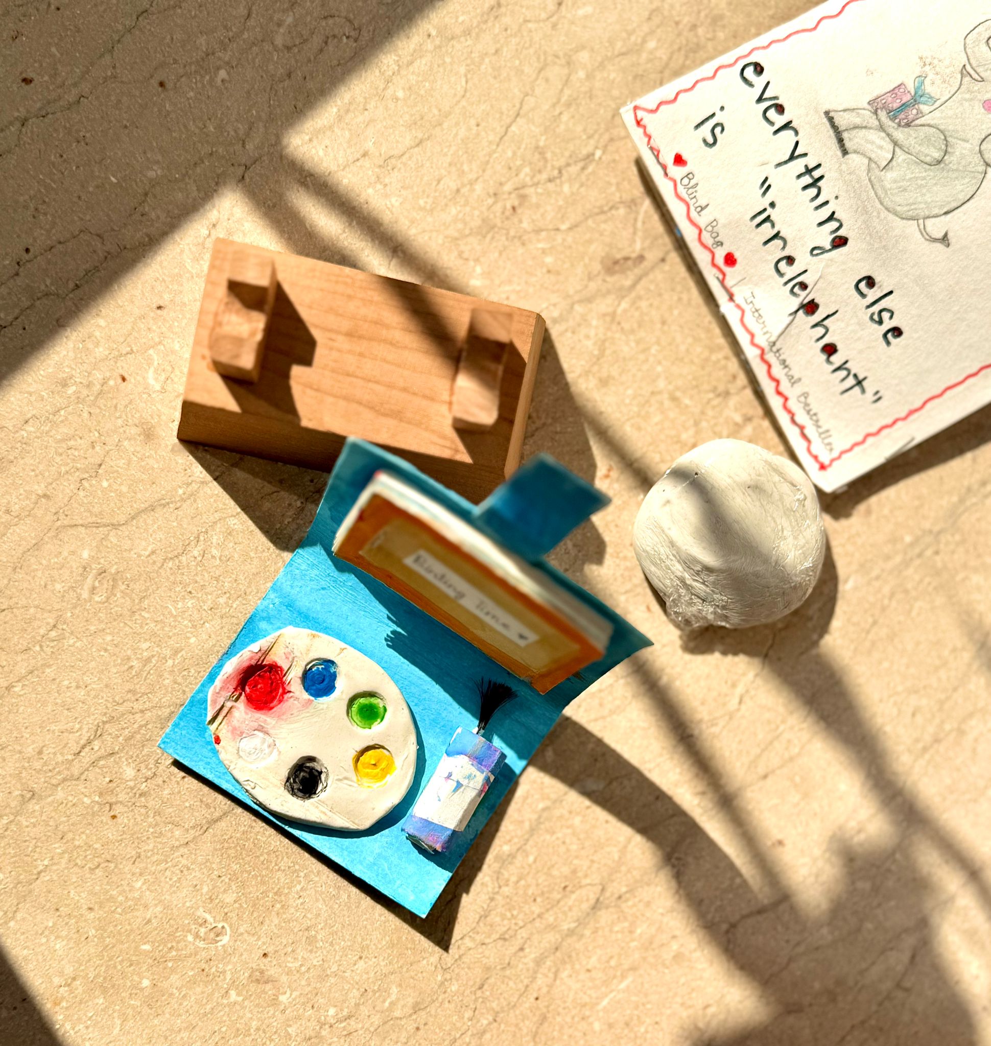 This miniature painting kit is a tiny celebration of creativity and imagination. Carefully crafted to look just like a real artist’s kit, it features little paint containers, miniature brushes, and thoughtfully designed details that bring the world of art to life—only in a much smaller size. Every element is made with patience and care, capturing how everyday objects can become magical when seen from a new perspective. Though it cannot be used for painting, this tiny kit tells a story of an artist getting ready to create, reminding us that big ideas often begin in the smallest spaces. A perfect addition to the Tiny Treasures collection, this piece reflects the joy of making, the love for detail, and the wonder of turning ordinary things into miniature art.